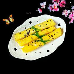1.Sprinkle sesame seeds on the surface of the egg cake when it just starts to solidify, so that it will stick to the egg cake.
