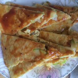 7.The next step is to make the sauce.Put all the ingredients into a bowl and stir evenly.Then spread it on our fried pancakes.Use a knife to cut the cake into 8 even pieces!