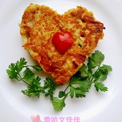 11.Which bowl of shredded potatoes can fry one and a half pancakes, so the remaining I made some heart-shaped cakes using a heart-shaped mold, which is available in supermarkets.Give him a nice name "Love at First Sight"