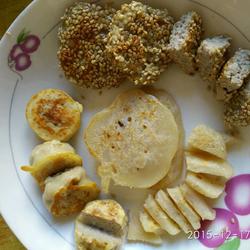 16. Part of the lotus root filling can be rounded and wrapped in white sesame seeds, pressed into cakes and fried Cooked or fried.