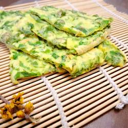 1.In order to increase the crispy texture of the celery leaf egg pancake, add some peanut oil to the batter.Do not put any oil in the electric baking pan or pan, just brush it with a little oil.