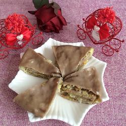 4.Pour the mixed stuffing onto the large dough and spread evenly