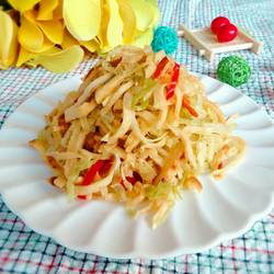 5.Add cabbage, green and red peppers, add salt and stir-fry.