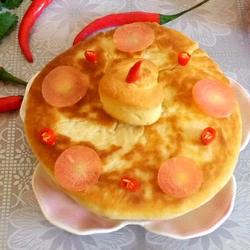 8. Turn over and bake the other side until golden brown, turn off the heat and serve out, the cake is done..