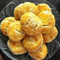 13. Place on a baking sheet lined with greaseproof paper and press into small cakes.Beat an egg yolk and brush a thin layer on the surface of the cake.
