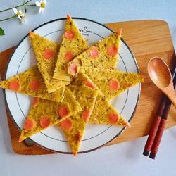 8. Heat the oil in a pan, pour in the egg paste, and when it is not solidified, put the ham slices and press them tightly.Fry over low heat until both sides are cooked and serve.