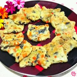 7. Add oil to the pan.When the oil is hot, pour the batter into the pan and fry on both sides.Just yellow.