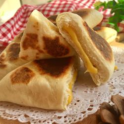8. Heat the pan , put in the dough and bake over low heat until both sides are swollen and slightly burnt