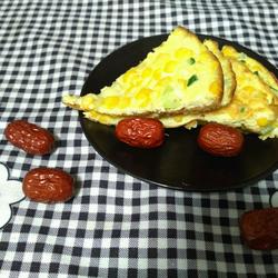 4. Pour the corn kernels and diced cucumber into the eggs and stir evenly.Add a little salt and a little sesame oil..