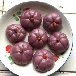 2. Steam it in the pot and put some purple sweet potato in the bowl.It won’t be so dry after steaming! Crush it with the back of a spoon