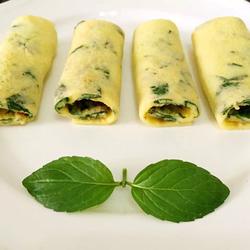 2.Mix eggs, flour, mint leaves, a little salt and milk evenly.