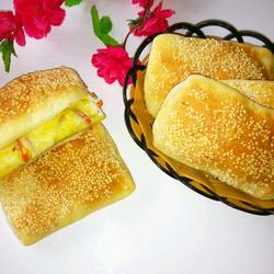 16.After rolling out, apply a layer of sugar water with a brush, sprinkle with white sesame seeds, put it on a baking sheet, and preheat the oven to 200 degrees for 20 minutes