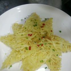 6. The potato shreds are slowly finished and then cooked! Turn down the heat and slowly add oil when the potato shreds are stuck together! Add oil until just enough to cover the potato pancakes.Fry over low heat until golden brown.Drain!