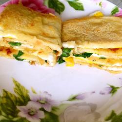 4.Wait a moment After the batter is heated, add eggs and spread evenly and turn it over