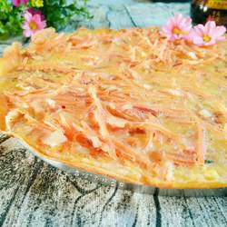 9. Pour the hot oil into step 7, use a spatula to evenly distribute it, and cover the pot with a small lid Fry over low heat for about 10 minutes without turning over.