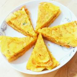 7.Turn over and fry for 2 minutes, remove from the pan and cut into small pieces
