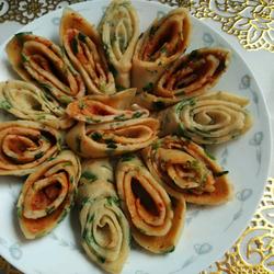 9.The other side is also baked, roll it up, and bake all the batter at once