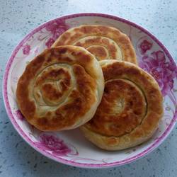 5. Mix three measuring cups of flour with warm water, add a small amount of yeast, and make a cake.Not too hard.