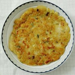 5. Heat the pot, pour a small amount of oil, and put the mixed noodles into the pot Medium, just enough to make a cake, use chopsticks to carefully smooth it into a round shape.