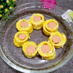 6. Roll up the ham as shown! Use a little force, because the egg pancake is a bit thick, so the roll is a bit loose, I will pay attention to it next time!