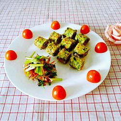 6. Heat the electric pancake stall and put it in a little oil to moisten the pan.Pour in the mixed vegetable paste and fry until both sides are browned (fry at low temperature until cooked through)