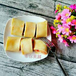8. Take a piece of pancake and flatten it, put in the chicken and spread the tomato sauce on it.