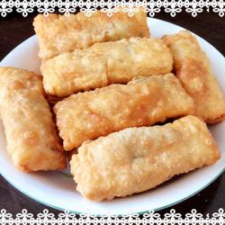 11. Heat oil in a pot and pour it when it is 50% hot.Add spring rolls and fry until one side is browned.