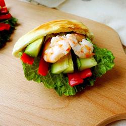 4.Put the lettuce, cucumber, red pepper, and shrimp into your pocket, and add some fine sea salt and black pepper yourself.Cracked pepper