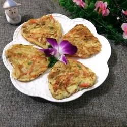 4. Put the shredded carrots, shredded potatoes and chopped green onion into the egg liquid bowl.