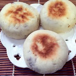 6.Take a dough, use a rolling pin to roll it into a thin pancake with thin edges and a slightly thick middle, and put purple rice in the middle for filling;