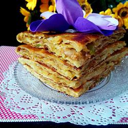 4.Take an appropriate amount of dough and roll it into a thin pancake skin.