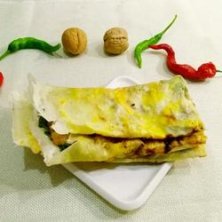 11. Then flip the pancake over and sprinkle with chopped mustard and kelp.Silk,