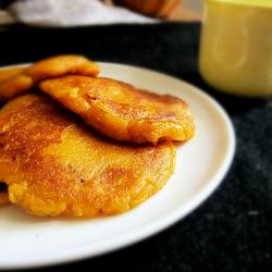 9.Take a small ball of sweet potato and pat it flat in the palm of your hand