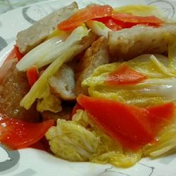 1 I like to cut the meatloaf into large pieces.If it is thin, it will be fried easily and will not be able to be eaten.2.The carrots need to be cut into thin slices.They need to be fried together with the baby cabbage.It does not need to be fried for too long or it will become too old.3.If there is celery, it will taste better if you fry it together.