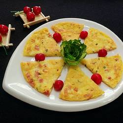 13. Put it on the plate, add a little decoration, a delicious pan-fried potato shreds and eggs The cake is ready.