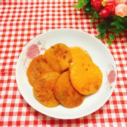 8.Put oil in the pan, turn on low heat and fry the pumpkin cake until golden brown on both sides, then serve