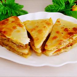 7. Spread the pork filling evenly and smooth it with a shovel.Because it is raw meat, it will not be easy to cook if it is thick and thin.The thin layer is just right