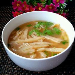 6. Cook for about three minutes, add coriander and turn off the heat.After turning off the heat, add sesame oil and Chicken Essence.