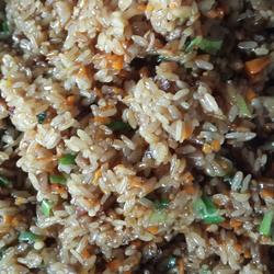 4. Fry for about 20 minutes, until the rice becomes rice-like, add some carrots and soy sauce (according to your own requirements Add the amount you like) and fry for 10 minutes