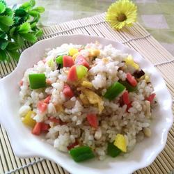 5. Stir-fry until golden brown, add rice and stir-fry!