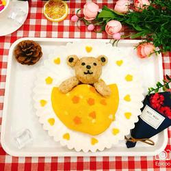 15.Crack the eggs into a non-stick pan and bake them into egg pancakes, spread them on top of mixed vegetables and tofu to make a little bear quilt, complete