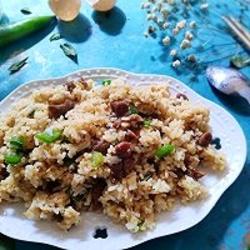 4.Pour in the freshly cooked rice and continue to stir-fry evenly.