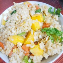 7.Finally, pour in the coriander, stir-fry the mango and serve.