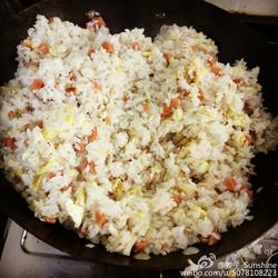 2.Put in the overnight rice, stir-fry the overnight rice until it is cooked, and finally sprinkle with chopped green onion.