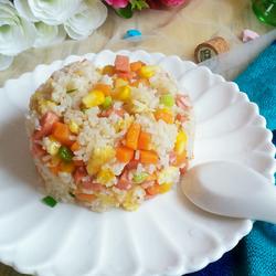 1. Prepare rice, corn kernels, carrots, eggs, ham sausage