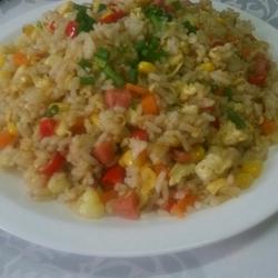 3. Then heat the pot, add a little oil and fry the eggs.Use a shovel to dig out the eggs and set aside.Add some oil, pour the corn, carrot, ham and sausage into the pot at the same time, stir-fry until fragrant, then pour the rice into the pot, and eggs can also be added.Continue to stir-fry.Finally, add salt and chicken essence and it will be ok
