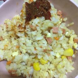 4. Heat the oil in the pot and add the ham sausage Stir-fry the diced carrots and diced carrots (some corn kernels have fallen off, try not to lose too much)