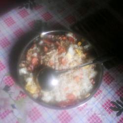 6. Put the fried ham and egg fried rice into the plate and it's OK.