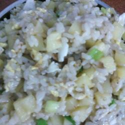 3.3 Finally, pour the rice into the pot and stir-fry for a minute, add the eggs and stir-fry for a short while, then add the chopped green onion