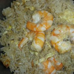 Shrimp, either raw or cooked.The reason why I add salt is that just adding soy sauce for color and flavor is not enough.So add salt or not according to personal requirements.Why add water to the rice? Because the overnight rice I used was not stored in the refrigerator, I added a little water to let it absorb, and the rice became soft and spread out.Remember not to have too much water, I have just enough.The rice stir-fried with water added to overnight rice is better than fresh rice and does not stick to the pan.Therefore, the fried rice has good color and distinct grains.Like it! PS: You can also add some vegetables or something to the fried rice! I just have limited food at home!